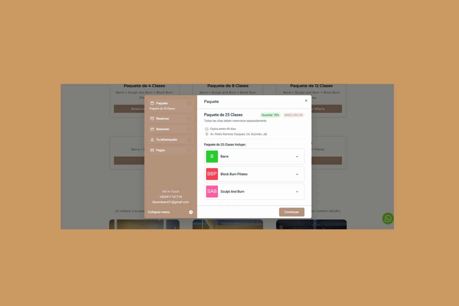 Creamos un sitio con WordPress y Divi, completamente adaptado a la línea visual de la marca, e implementamos Amelia como motor central de reservaciones. Incluimos automatizaciones, sincronización con Google Calendar, preguntas personalizadas por servicio y un flujo diseñado para maximizar conversiones.